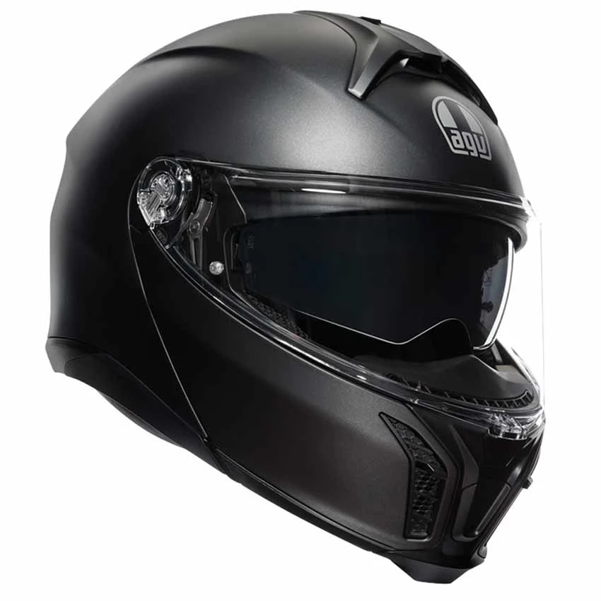The anti-scratch clear visor offers a wide field of view and is supplied with a Pinlock Maxvision lens to prevent fogging of the visor. The visor mechanism offers the possibility to lock the visor in 4 different positions. Furthermore, the Tourmodular is equipped with an integrated sun visor that is easy to operate with a slider on the side of the helmet.
