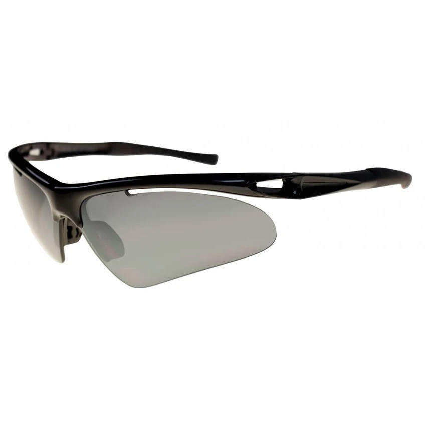 These Bercom sunglasses are tough, sporty glasses with a light and durable frame. The “Smoke” glasses are also made of light and durable material. The glasses offer UV400 protection to the eyes. There is no frame at the bottom for an even sportier look.