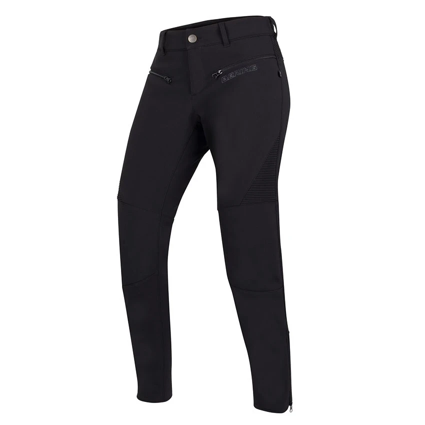The Bering Alkor lady is casual motorcycle pants with a sleek look. It offers high comfort through an optimal fit with high breathability. The outside material is made of softshell which is abrasion-resistant and gives you the feeling of freedom of movement. With a BWTECH membrane is water-resistant and keeps you dry during (a light) rain shower.