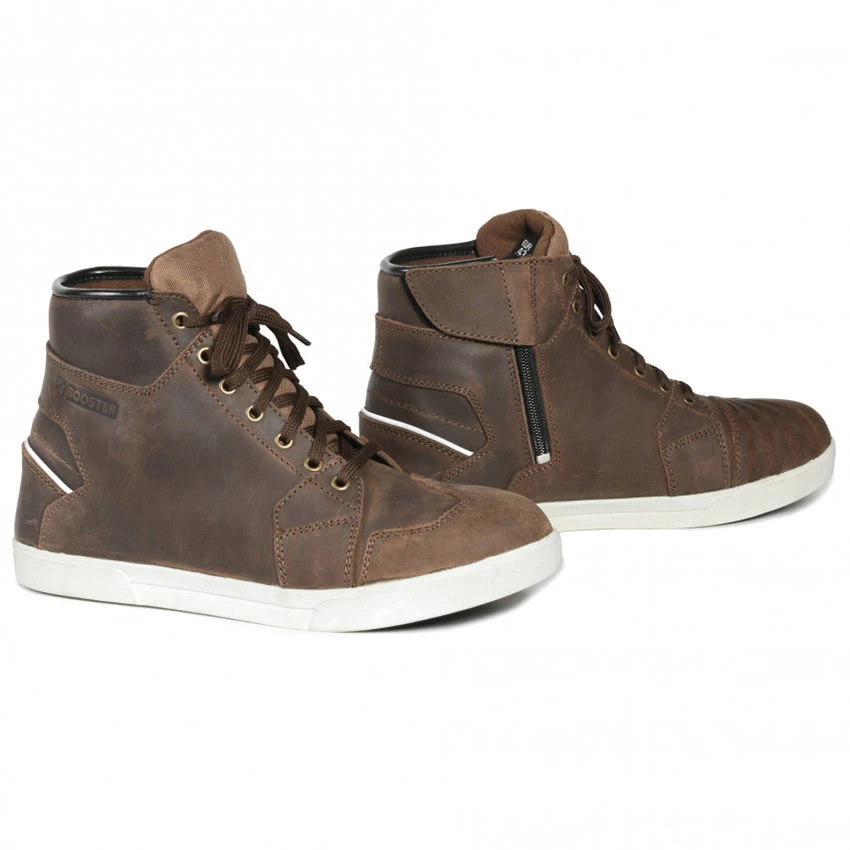 The BTX WP is a casual waterproof motorcycle sneaker from the brand Booster. Casual yet protected on the road! The BTX is made of leather with a waterproof membrane so you do not have to worry about getting wet feet during bad weather. Protection/reinforcements can be found in the gear, ankle, heel and toe area. The spacious instep with zippers and lacing makes it easy to put on these motorcycle shoes. Furthermore, the anti-slip sole and padding ensure a comfortable fit while driving.