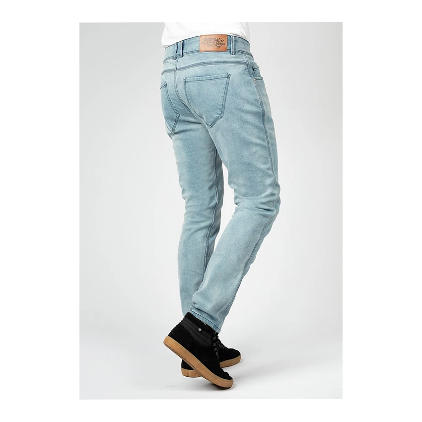 Bull-It Arc has a traditional 5 pocket denim jeans design with Slim Fit Cut fit. With this single layer motor jeans for men the Covec protective layer is intertwined with the cotton outer layer. With new yarn for preserving stretch for improved comfort and fit. Delivered as standard with level 2 protectors on the knees and hips. The outer layer has been treated with a rain-repellent layer.