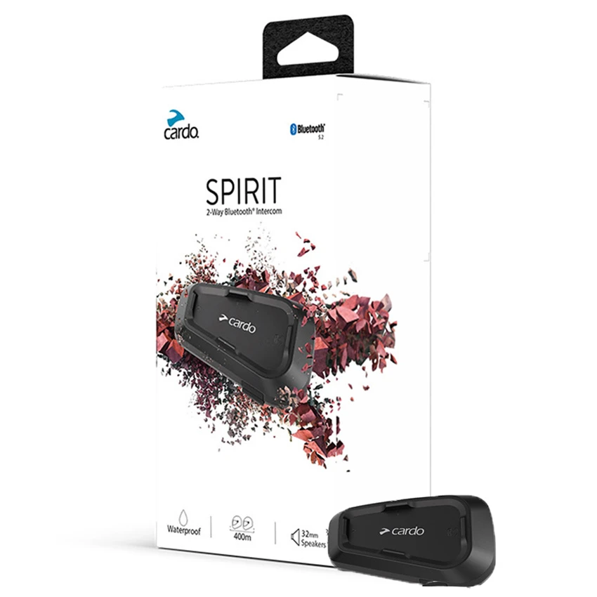 Equipped with the latest Bluetooth technology: Bluetooth 5.2 chip the Spirit intercom easily connects to any Bluetooth headset of any brand. Pair up to 2 Bluetooth devices: Cellular, GPS and Music streaming. With use of the Cardo Connect app you can customise the settings to your liking. The app is also used to download the newest software right onto the Spirit.