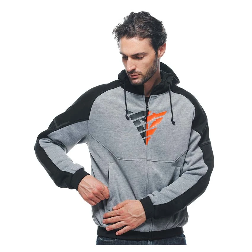 Made of soft fabric, Dainese Daemon-X Safety motorcycle hoodie is an extremely comfortable and versatile motorcycle sweatshirt. The fit is comfortable and casual due to the Pro-Shape 2.0 protectors on shoulders and elbows, not bulky or visible. The protection levels are also increased by a design that can accommodate a back protector, the pocket model G.