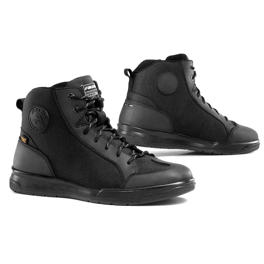 Casual motorbike trainer from Falco. The Pyro 2 motorbike shoes feature a high-tex waterproof* and breathable membrane to keep your feet dry in unexpected light rain showers. For protection, the Falco Pyro has D3O ankle protectors and reinforced toe and heel construction. The outer material is made of abrasion-resistant Micro-Synth synthetic leather and the Dual-compound rubber sole is shock-absorbing and anti-slip.