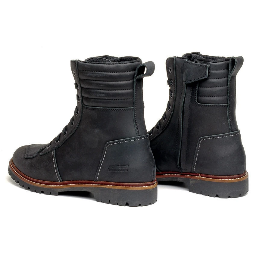 The Falco Rooster motorcycle shoes are made from premium full-grain leather. Treated with a special oil for a beautiful shine. The High-tex waterproof membrane ensures that water cannot penetrate the shoes. Protection is provided by the D3O ankle cups and reinforcements around the toes and heels. The Vibram oil and petrol-resistant sole offer increased grip and comfort.