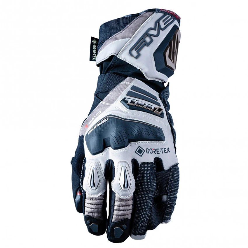 When you head off to into uncharted territory, it’s only right to expect the finest in comfort, safety, and durability. This is exactly what you’ll get from the TFX1. It includes materials and a design that make it the ultimate in grand touring equipment. Its full-grain goat leather palm construction, and a topside that combines water-repellent stretch fabric and RipStop, give it a level of comfort and toughness that are essential for long days on the road. Exceptional fit, a true FIVE hallmark, is in full effect here. Its GORE-TEX® breathable/weatherproof membrane bonded to the palm liner and leather shell keeps you perfectly protected from bad weather (including driving rain), with maximum sensitivity at the controls. The TFX1 has all you need in terms of protective elements, without hindering your movements when you ride, including a large SuperFabric® insert inside the palm, all the way through to the outer fingers. Its dual-fastening system with a V-shaped band and Velcro® allows for ultra-precise adjustment over or underneath the sleeve of your jacket. Featuring Clear Vision Pad™ visor-cleaning and Touch Screen™ systems, the TFX1 keeps you in control of your navigational devices. Its technical qualities and cutting-edge design are sure to satisfy those who can’t imagine heading off on a long road trip without the right equipment… and who want nothing less than the very best!