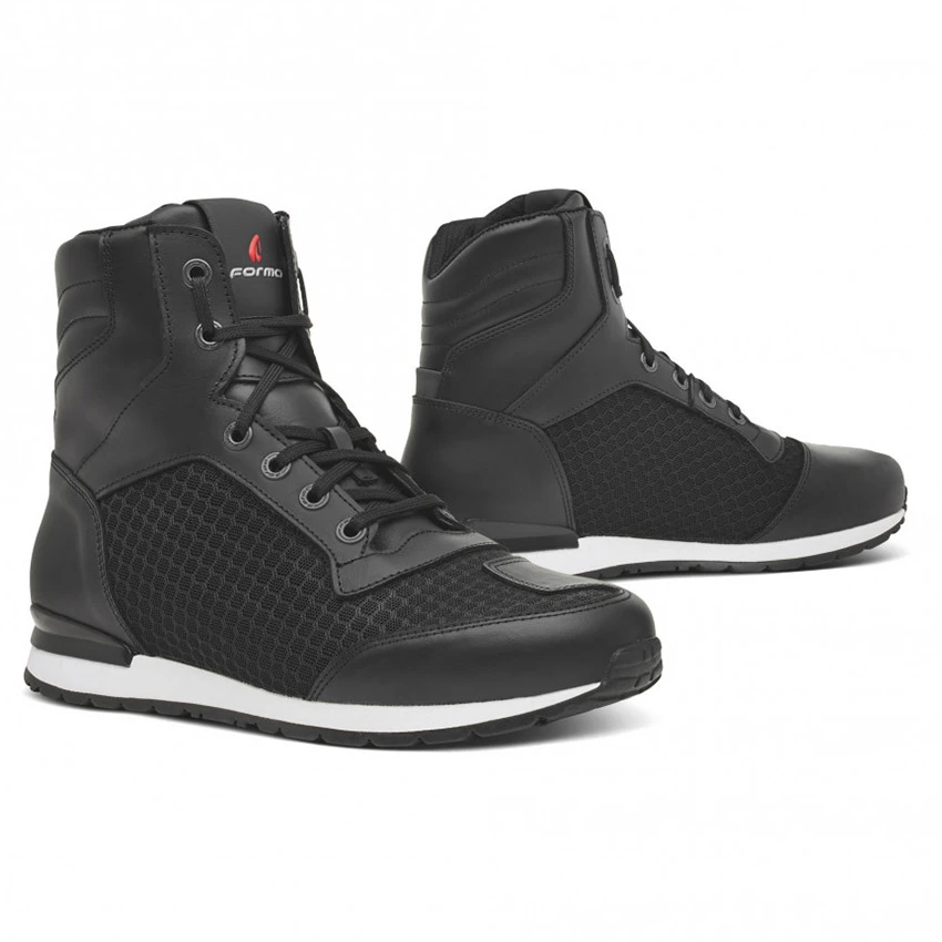 Sport casual fit motorcycle sneakers. Made of leather with soft polymer padding with memory foam for comfort.