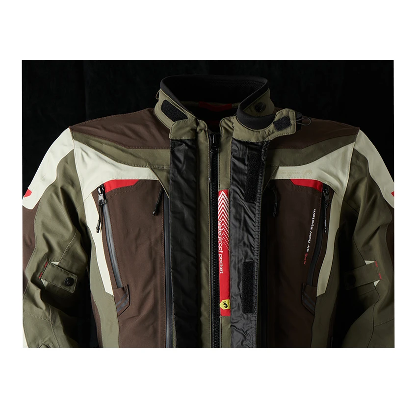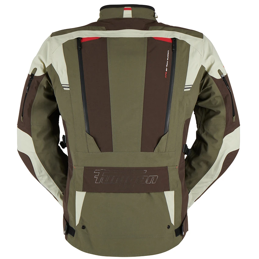 The Furygan Voyager 3C touring/Adventure men’s motorcycle jacket is made of durable 3-layer laminated polyester. This extremely technical motorcycle jacket makes all adventures possible in every climate. Even if you switch the seasons from one to another. Extreme heat, torrential rain or even polar cold, it masters all external elements thanks to its three-layer laminated technology. The AFS Max Adjustable Air-Flow System offers multiple ventilation zippers on the arms, chest, and back for improved airflow. The Voyager is standard equipped with D3O protectors on the shoulders and elbows, and prepared for a back protector insert.
