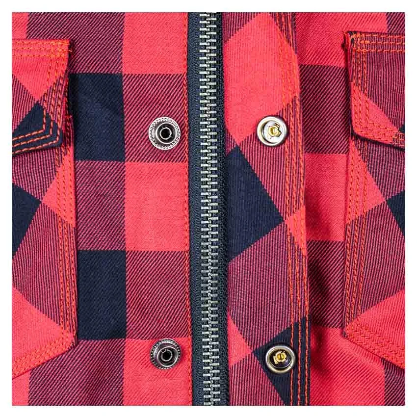 The Germas Jaguar Lady is a casual motorcycle shirt for woman. Made of cotton with an aramid fiber lining for protection and abrasion resistance. The Jaguar comes standard with CE protectors on the shoulders and elbows. In addition, this plaid shirt is prepared for back protection. The front zip is hidden by a popper strip for that true plaid shirt look.