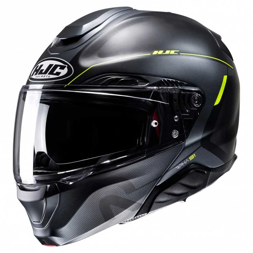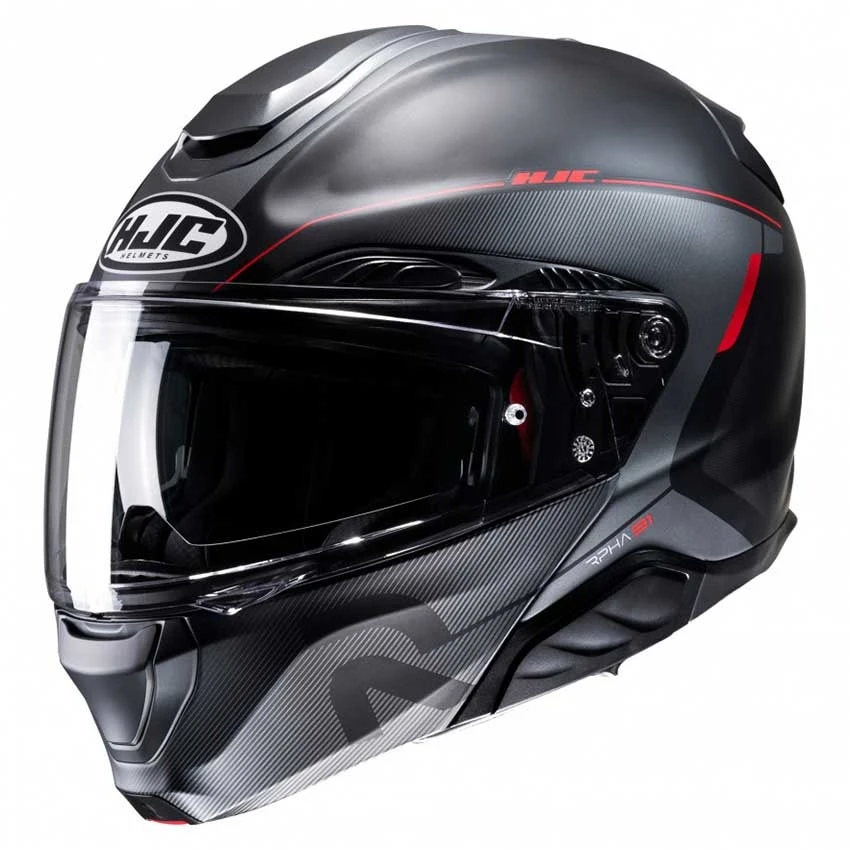 The HJC RPHA 91 Combust flip-up helmet was engineered for all-day comfort. The new Premium Integrated Matrix EVO shell (P.I.M. EVO) provides enhanced shock-resistant performance and is lightweight by using reinforcement materials that include carbon-aramid, carbon fiber, glass fiber, organic non-woven fabric, and linen fiber (natural fiber).Â
