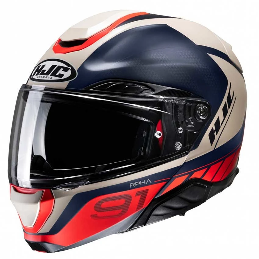 The HJC RPHA 91 Rafinot flip-up helmet was engineered for all-day comfort. The new Premium Integrated Matrix EVO shell (P.I.M. EVO) provides enhanced shock-resistant performance and is lightweight by using reinforcement materials that include carbon-aramid, carbon fiber, glass fiber, organic non-woven fabric, and linen fiber (natural fiber).