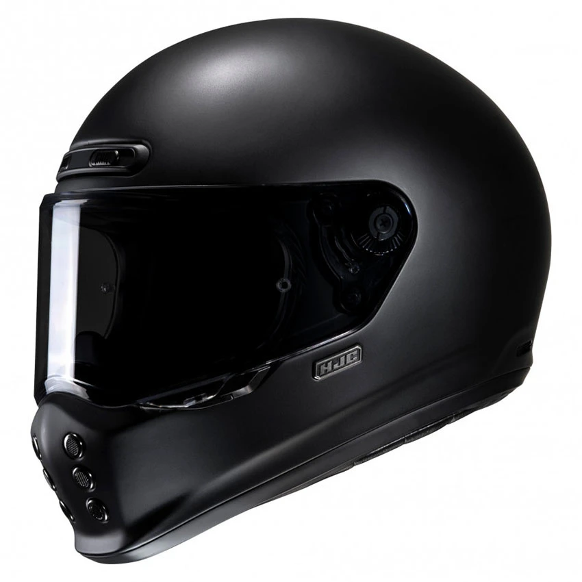 The HJC V10 motorcycle helmet goes beyond the vintage look with new-age features such as a lightweight fiberglass shell, aerodynamic performance, emergency tabs for extra safety, detachable and washable interior, and easy bolts for a quick visor replacement. This helmet is Bluetooth compatible with Smart HJC.