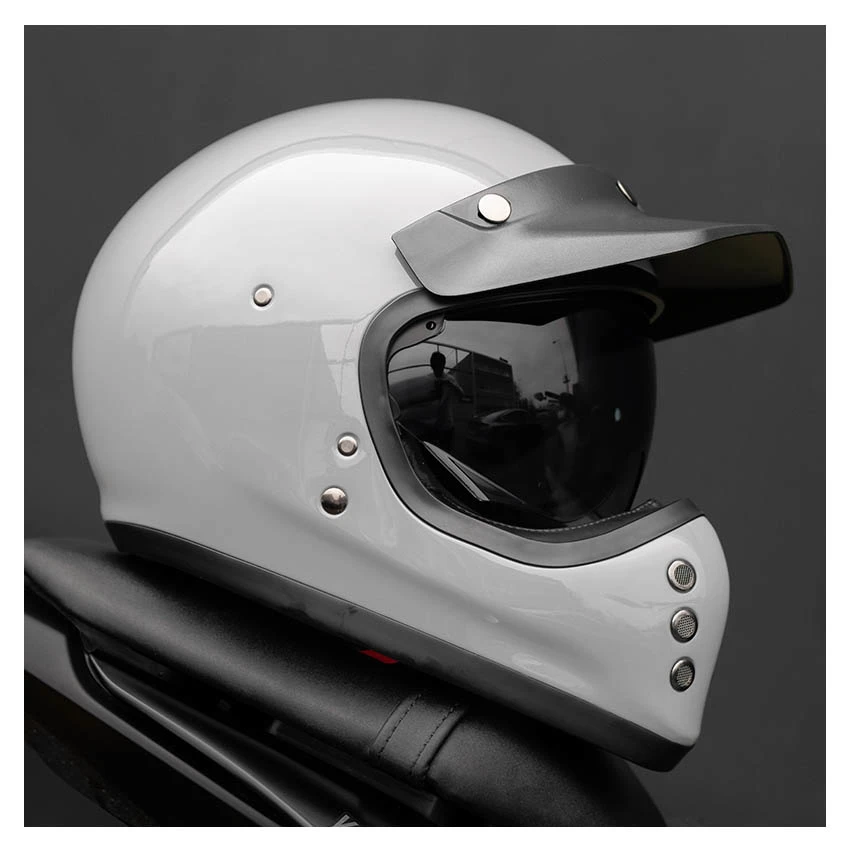 Classic styling with a modern twist, the HJC V60 adds a brand-new category of helmets in the off-road lineup. Inspired by the original FG-01 from the 1980s, the V60 goes beyond the vintage look with new-age features such as a lightweight fiberglass shell, a large inner IS-10 visor, built-in speaker pockets, removable and washable interior, and emergency release cheek pads for extra safety. The V60 also includes a removable 3-snap peak visor to complete the retro look.
