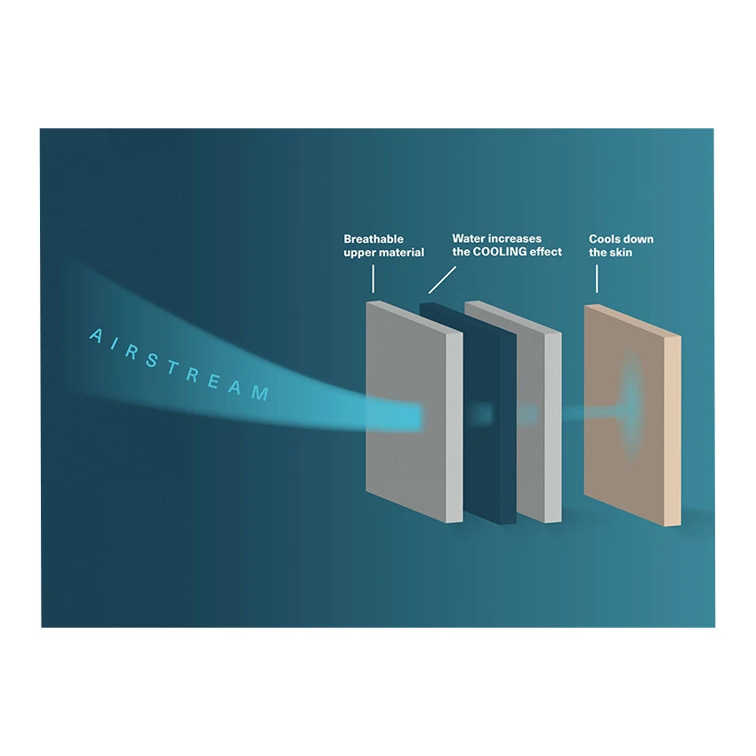 By evaporating under a mesh jacket, the iXS Bodycool Dry Vest cools down between 8 hours and 3 days depending on temperature and humidity. The vest performs best in low to medium humidity. The level of airflow determines the cooling effect. Zipper with handy Zip handle makes it easy to put on. Side panel is designed with a stretchy and breathable mesh for more freedom of movement.Â