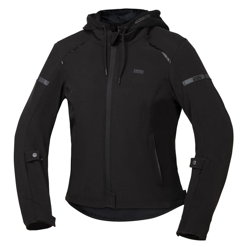 Comfortable water-repellent women’s softshell jacket with 3 ventilation openings. The IXS motorcycle jacket Classic moto 2.0 lady comes standard with level 1 protectors on the shoulders and elbows, and is prepared for a backprotector insert. Comfort collar and lycra cuffs for best wearing comfort. The hood is removable and you can adjust the width on the hips, sleeves and cuffs for a more personal fit.