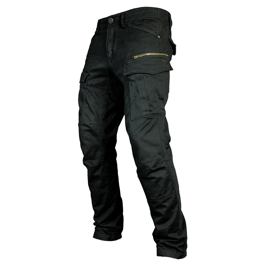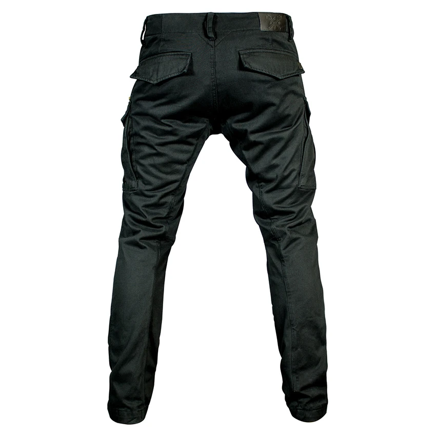 The stretch cotton-twill outer fabric combined with the XTM-Fiber® lining provides a CE certification: AA (EN17092-3:2020). The Cargo Stroker black also has integrated knee and hip protector pockets. The knee protectors are height adjustable. Level 1 knee and hip protectors are included. Thin, extremely flexible, water-repellent, but also optimal protection in the event of extreme conditions and accidents during every ride, whether in the city or on long journeys.