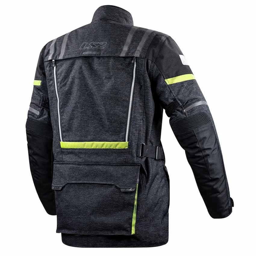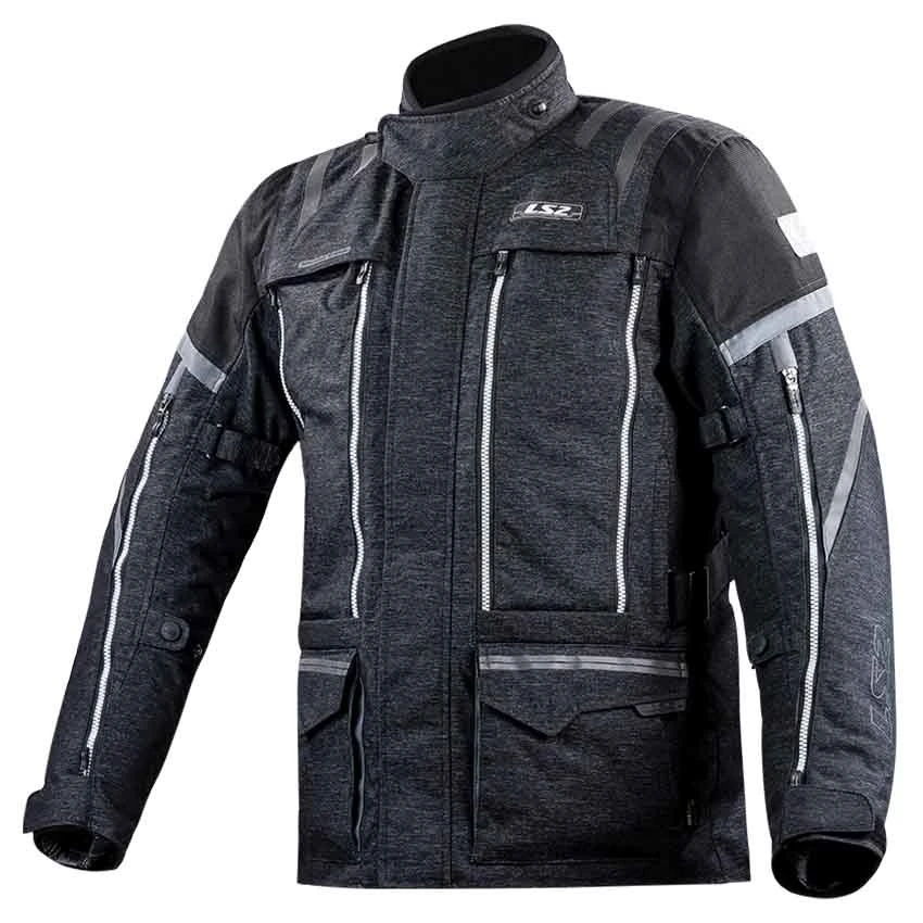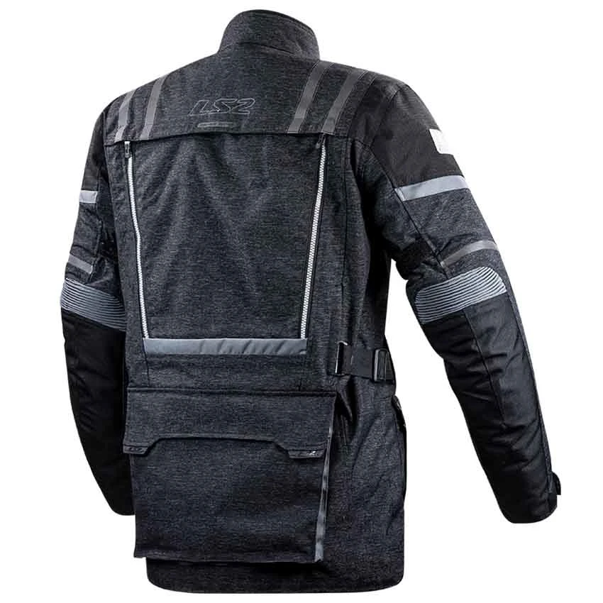 LS2 Nevada motorcycle jacket is made of abrasion-resistant Cordura Nylon Mix polyester fabric. Standard equipped with removable shoulder and elbow protectors, and prepared for a back protector insert. The Nevada jacket features ventilation panels on the sleeves, reflective zippers as wel as two large front and one back opening (all openable by means of YKK zips) which ensure air flow when temperatures rise. The inside consists of removable thermal down and a (removable) waterproof membrane.