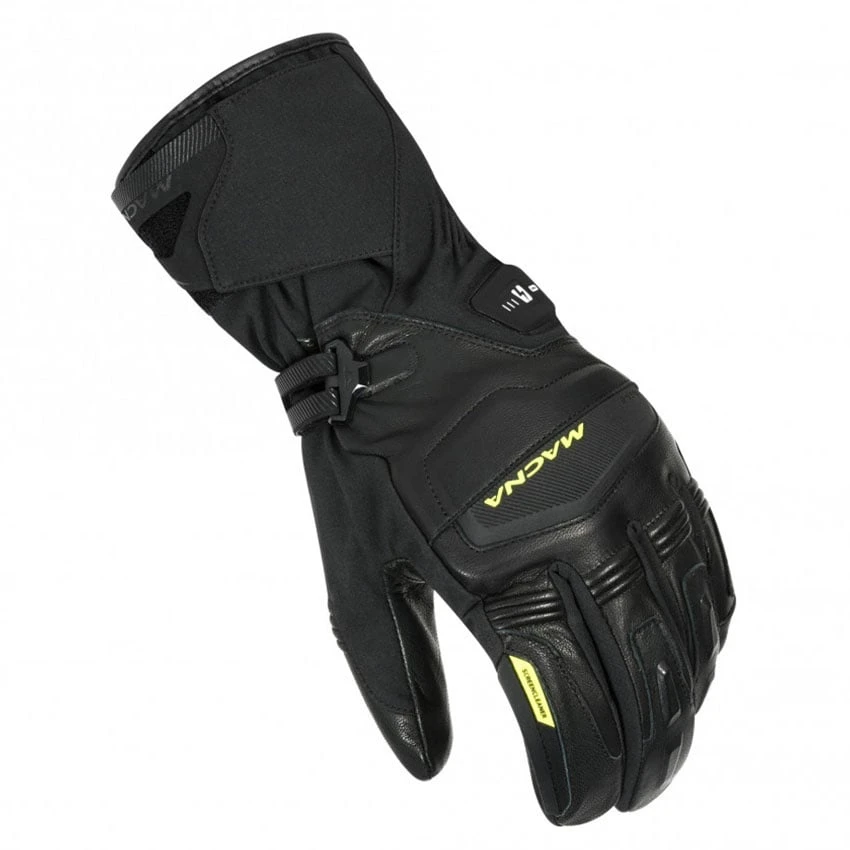 The Macna Azra RTX heated motorbike gloves are made from a combination of leather and textile for enhanced abrasion resistance and comfort. Of equally high quality is the TPR knuckle protection; flexible yet robust for maximum comfort and shock absorption. The Azra RTX features a waterproof Raintex membrane and has a Water exhaust to prevent water from getting between the membrane and the outer layer.Â