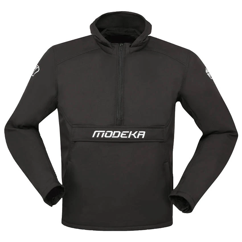 The Modeka Braker is a smock (over-the-head anorak) motorcycle jacket. Made of comfortable softshell material with Aramid reinforcements on the shoulders en elbows. Standard with level 1 protectors on shoulders and elbows, the Braker is also prepared for a back protector insert. The hood is detachable and thanks to the long zipper the jacket is easy to put on.