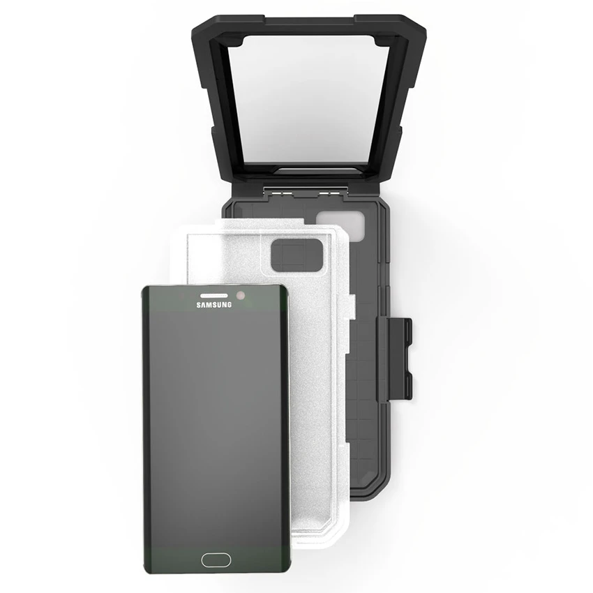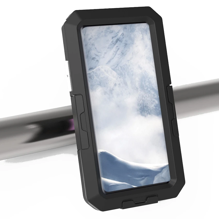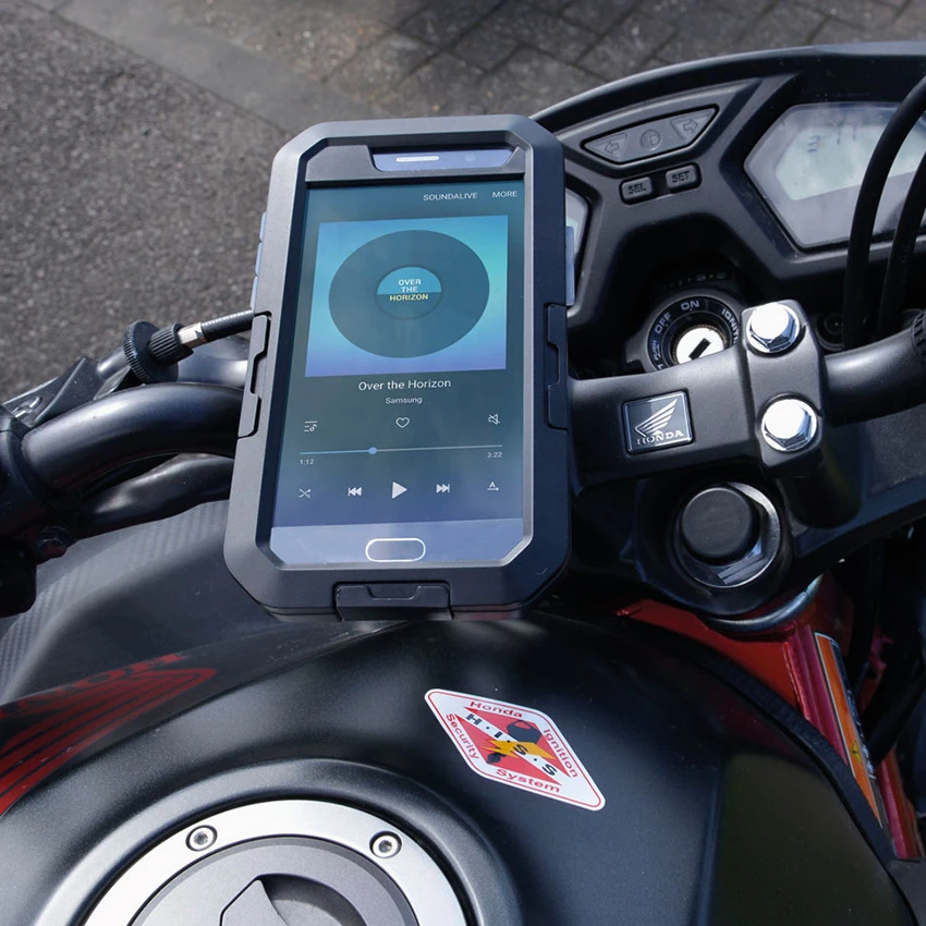 The Oxford Dryphone Samsung phone mount is ideal for riders looking for a dry and secure place to store their phone while riding. Both protective and waterproof, the Oxford Dryphone can be secured to your handlebars. You can use your phones navigation apps and Bluetooth functions while riding safely. Do not use your mobile phone while the bike is in motion.