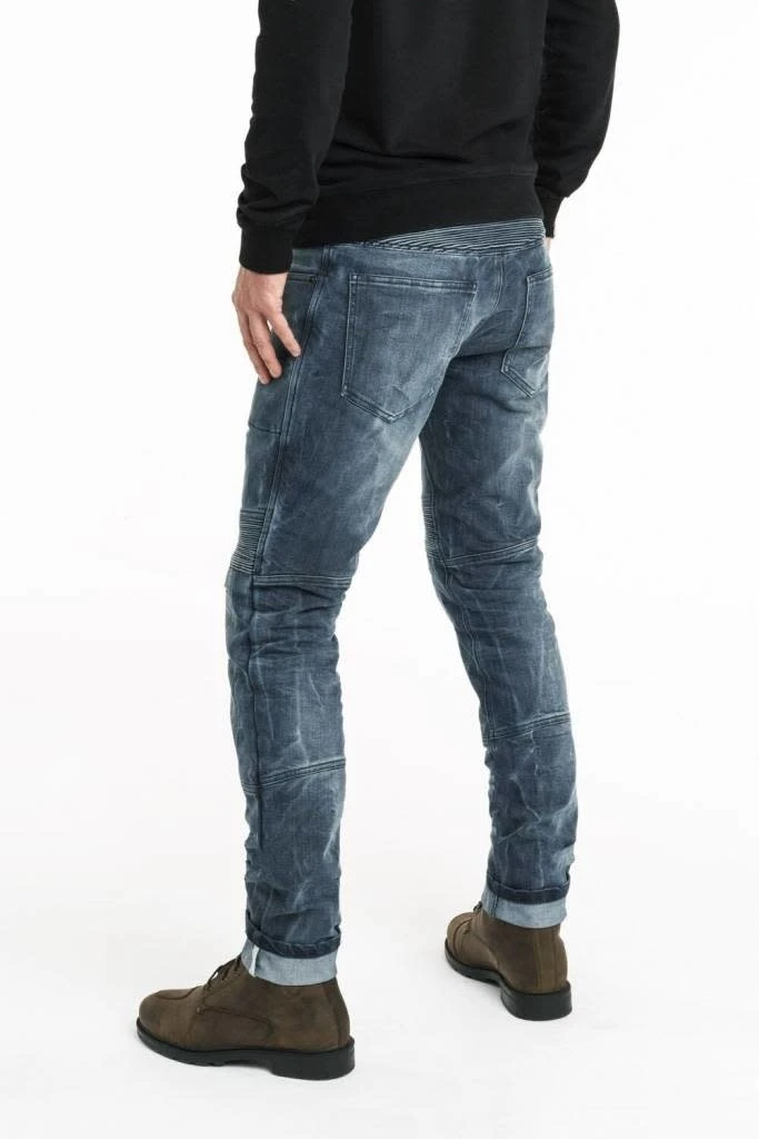 Look good, feel good by choosing a slimmer fit. Indigo 12.5oz Cordura® stretch denim loved by motorcyclists around the world. These dynamic jeans have a thick middle layer with aramid lining and reinforced stitches. Unique handmade aging distinguishes this design, made in Europe for unrivaled quality of the highest level. These jeans have character, flair and technology to support their value – with reflective cuffs for safety and knee / back stretch panels.