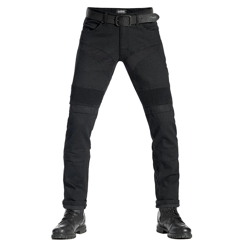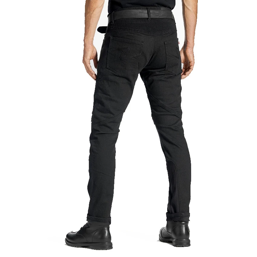 Take your next adventure to the next level with Pando Moto’s slim-fit, motorcycle jeans. The secret lies in 11oz super-stretch Cordura® denim loved by bikers worldwide. These dynamic jeans feature a thick mid-layer made of 100% DuPont™ with Kevlar® fibres lining and reinforced stitches. Ride with peace of mind thanks to reflective cuffs and high-quality reinforced stitches. Two-position knee armour pockets protect against the unthinkable, while a flawless European design guarantees durability, functionality, and craftsmanship precision you can trust. It comes with super slim Triple Flex knee armour. Enjoy CE officially approved PPE under EN 17092, level A (speed 45 km/h) safety.