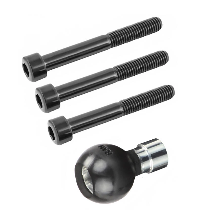 For M8 handlebar bolts, the RAM-B-367U motorcycle handlebar base will replace the existing bolt with a 1″ B size ball. This rubber ball base provides shock and vibration damping, and is compatible with a wide variety of B size RAM® double socket arms and device holders. The RAM-B-367U motorcycle handlebar base will work with any motorcycle that features an 8mm bolt or smaller on its structure. A smaller bolt can be used, though the load capacity decreases with the bolt size. Includes rubber ball, M8 x 55 bolt, M8 x 60 bolt, M8 x 65 bolt (1.25 thread pitch).