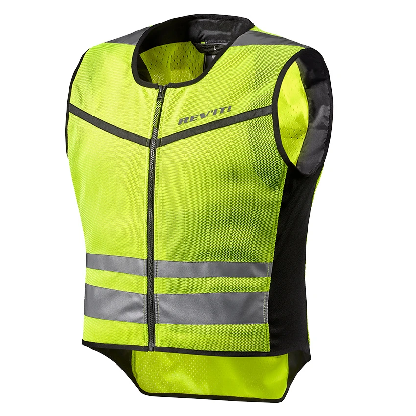 In order to remain highly visible in traffic without compromising on airflow, REV’IT developed the Athos Air vest as the summer edition of the popular Athos vest. The front and back panels are made of fully perforated PWR | shell mesh EN471 certified fabric. Stretch panels at the side ensure that the Athos Air vest fits easily over any summer mesh jacket in the REV’IT! collection, so air flows directly to your body through 2 layers of mesh fabric.