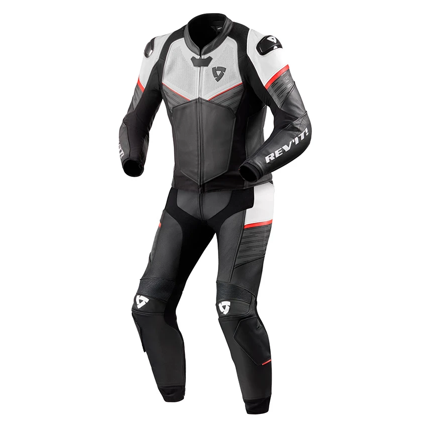The MotoGP-derived hard shell shoulder protectors emphasize the sportive style of the Beta motorbike combi and offer additional defence in case of a slide. The knees feature a hook and loop leather cover that can be replaced by knee sliders (not included). To keep you comfortable on the warmer days, Rev’it included 3D mesh ventilation panels on the shoulders and perforated leather panels on the chest to provide airflow to your upper body. So don’t be afraid to add some gas on your next journey!