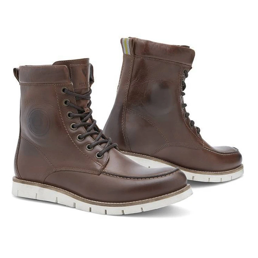 High classic motorcycle boot with a moccasin nose. Made entirely from full-grain cowhide with a water-repellent coating. The shoes are made entirely from full-grain cowhide and have a thermoformed heel and toe.