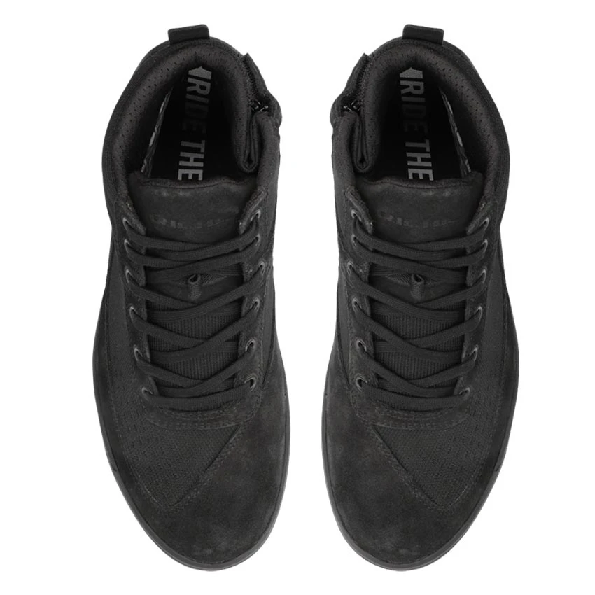 The rugged look of the Richa Douglas WP motorcycle sneaker, combined with velvet-soft suede, fits perfectly under your motorcycle jeans or touring outfit. The knitted sections provide cooling on hot summer days, while the Aquashell membrane keeps your feet dry. And safe, because Douglas is CE-certified and features additional reinforcement around the ankle, heel, and toes. Its smart design makes it the perfect comfortable companion.