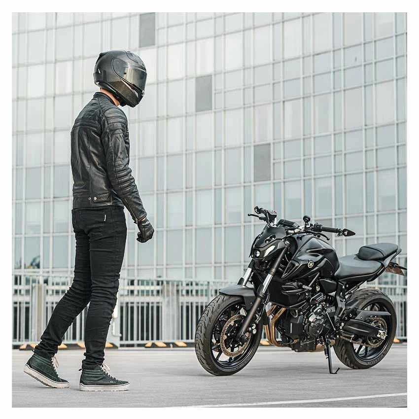 Comfortable jegging for every day driving. Perfect match with your Richa leather jacket. Ultra stretchy denim outer shell. Inside with aramid fiber-reinforced stretch fabric. D3O protection on the knees with optional hip protection. The position of the knee protector is adjustable. Safety stitching everywhere, not just in kea areas.
