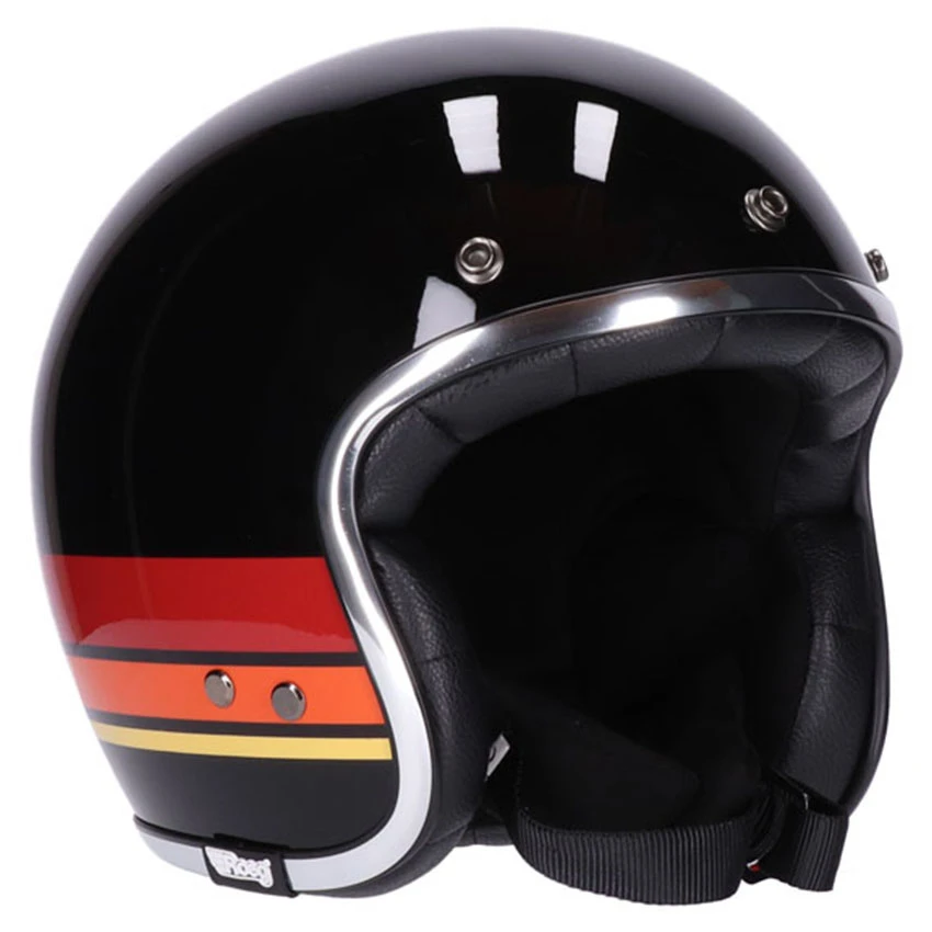 Featuring a classic Double D-ring adjustable chinstrap with Microtechnology fleece padding and premium brass integrated visor/shield snaps. Microtechnology fleece comfort lining with premium synthetic leather detailing for more comfort and classy touch. The Jettson 2.0 Pele open face helmet vintage white is ECE 22.05 approved and is delivered including a removable black peak.