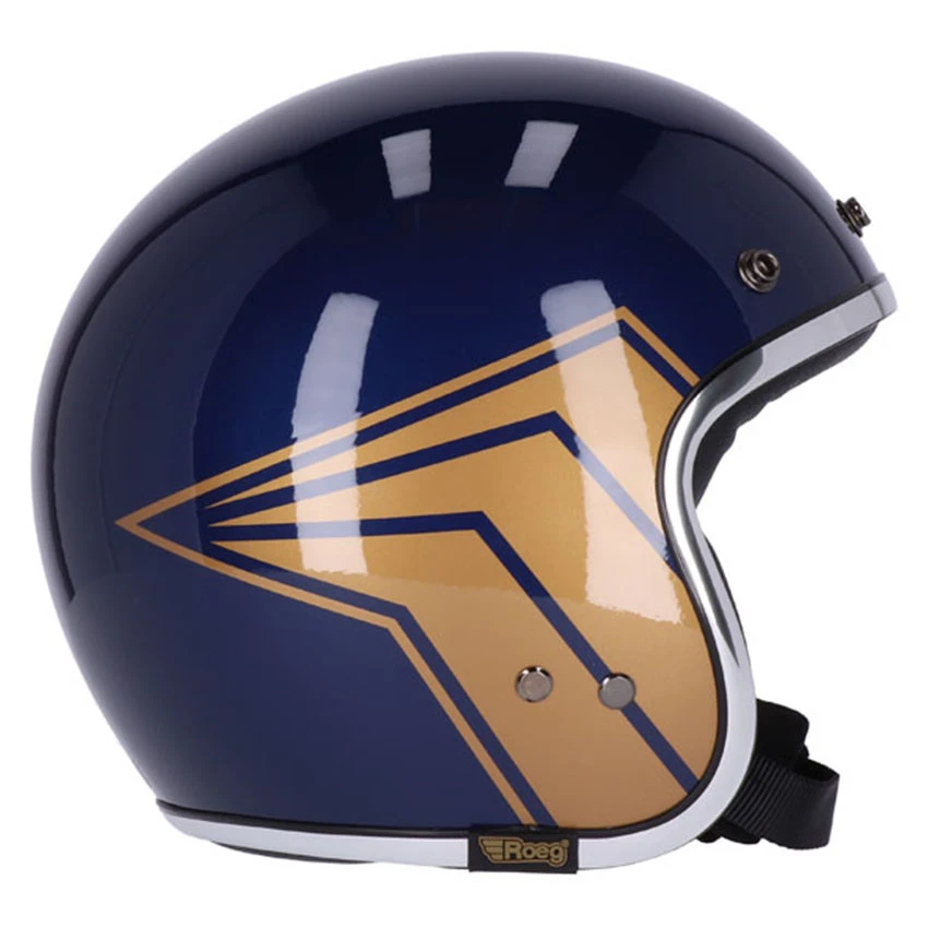 The old school kid of ROEG® the JETTson in collaps with 13 1/2 gives the Skull bucket helmet. The helmet has a handmade Fiberglass shell in four sizes with super-comfortable knitted liner sits nice and low on your head. Tested and apporved to the highest ECE-R22.05 standards. Complete with padded chin strap and classic double d-ring closure, plus integrated snaps for visors/shields. The wide, rough trim give the JETTson that distinguished 70s vibe. Including a black peak.