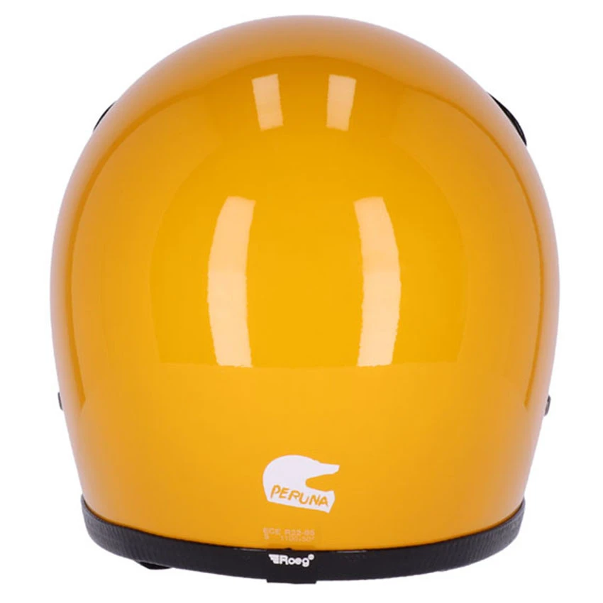 Adventure, for no good reason. It’s what makes the Roeg crew tick, it’s what they love, and it’s why they created the Peruna. Whether you’re kicking up dirt with friends, or finally heading out on that African desert trek you dreamt of, you need a Peruna. The Roeg Peruna 2.0 Sunset yellow helmet is made of ‘RQ LIGHT’ fiberglass shell with a multi-density EPS liner and available in two ergonomic shell sizes. Features a classic double D-ring adjustable chinstrap with microtech fleece padding, gunmetal grey integrated visor/shield snaps, Microtech fleece comfort lining which is remove- and washable, with premium perforated leather detailing, ECE-R22.05 approval, RQ XXL retro trim and removable dark smoke translucent peak.