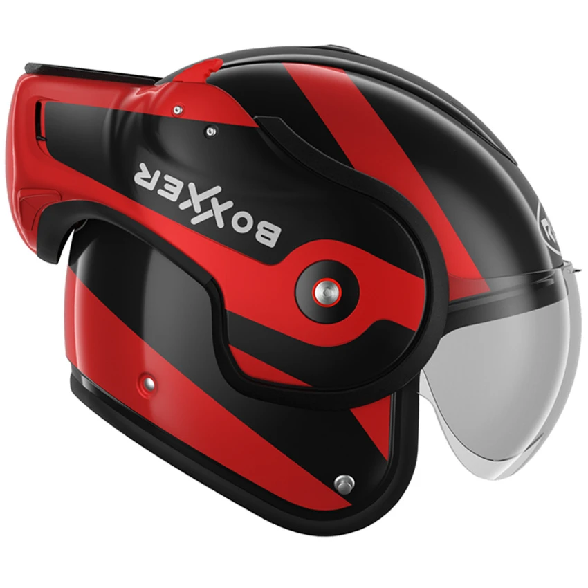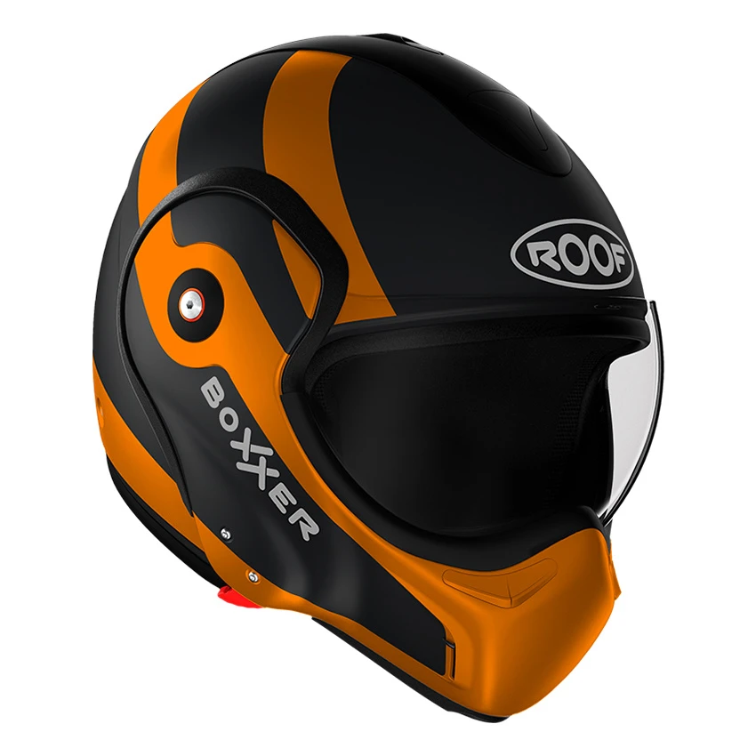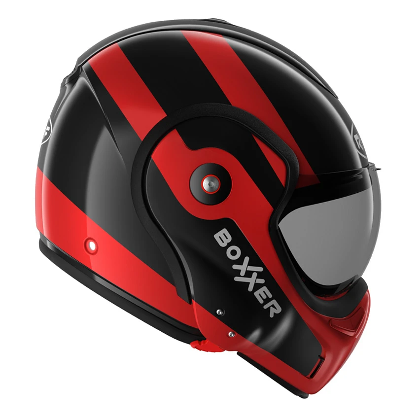 The new Roof Boxxer represents an important evolution that can be recognized by an extra X, with which the important new design changes are symbolized. glass fibre outer shell, Venturi ventilation on the top, new clip closure on the chin with automatic locking on both sides, more chin space, cheek cushions in 4 thicknesses, new washable and quieter inner lining. ECE 22-05 P & J inspection, approved as integral and as a jet helmet.