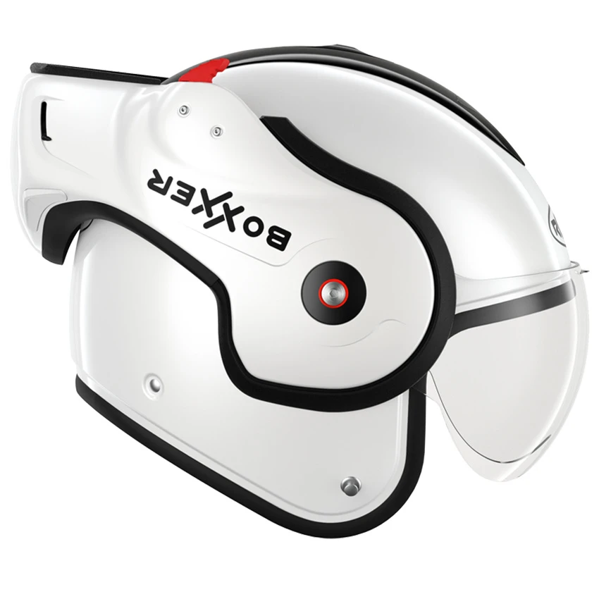 The new Roof Boxxer represents an important evolution that can be recognized by an extra X, with which the important new design changes are symbolized. glass fibre outer shell, Venturi ventilation on the top, new clip closure on the chin with automatic locking on both sides, more chin space, cheek cushions in 4 thicknesses, new washable and quieter inner lining. ECE 22-05, P&J approved as integral and as a jet helmet.