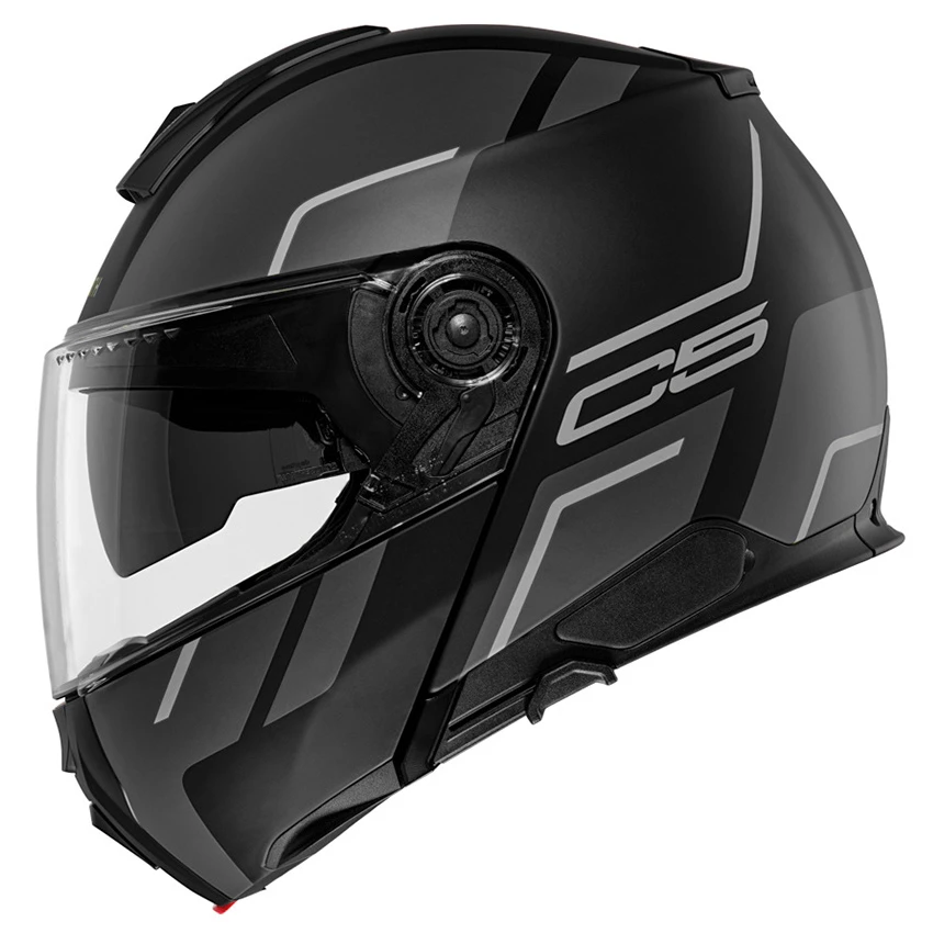 The Schuberth C5 Master helmet blends ultimate safety, amazing aerodynamic and aeroacoustic performance with compact and light design. One of the first helmets featuring the P/J homologation and approved according the new ECE 22.06 regulation. A DFP Fiber Glass shell reinforced with Carbon fiber provides for improved shock absorption and lighter weight. The Schuberth C5 offers aeroacoustic comfort with only 85 dB(A) at 100 km/h in a naked bike.