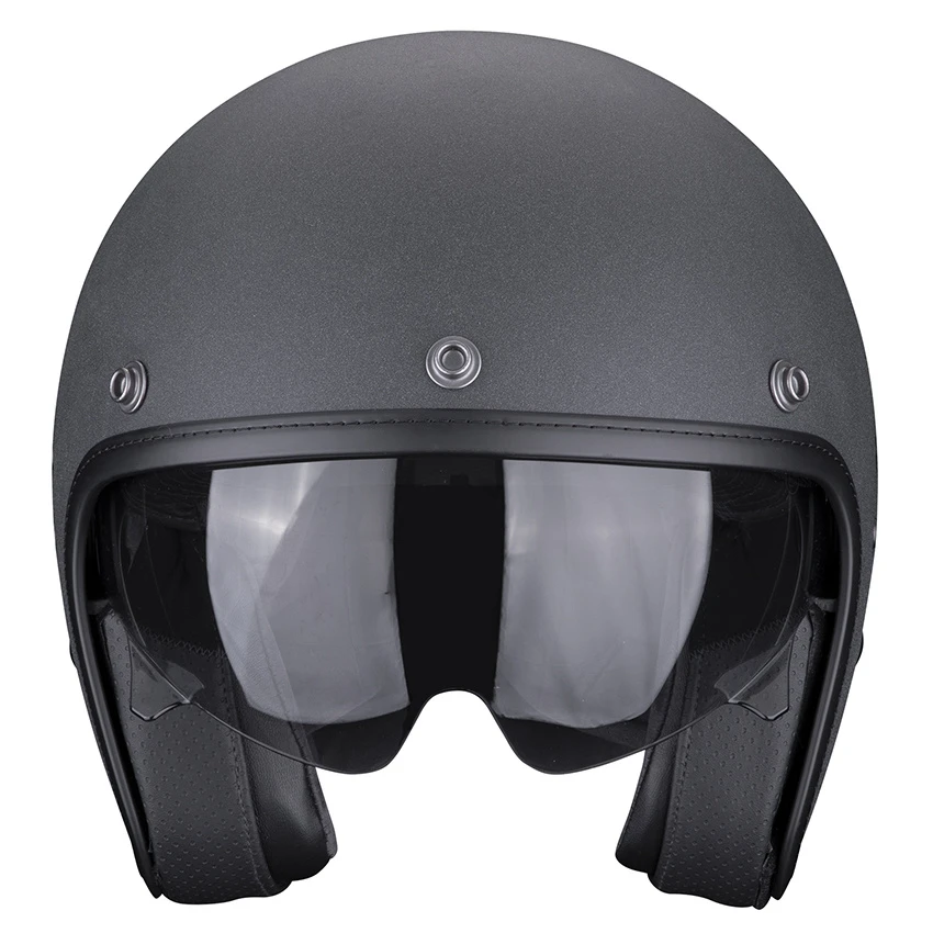 The Scorpion Belfast Evo Graphite offers comfort in a very stylish high quality jet helmet. Light and comfortable, you’ll appreciate it all the way through. Equipped with the Scorpion speedview sun visor for unimpeded driving in sunny weather. The lining of this helmet is equipped in a soft fabric with vintage style. The interior is of course removable and washable.