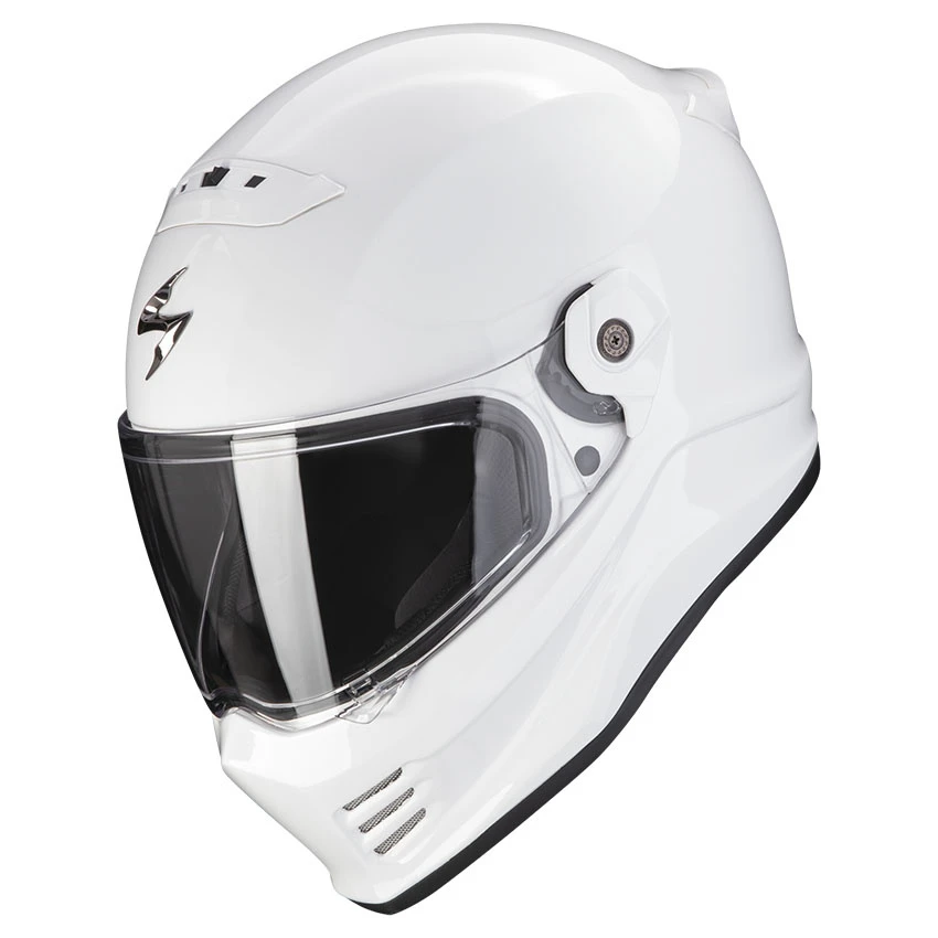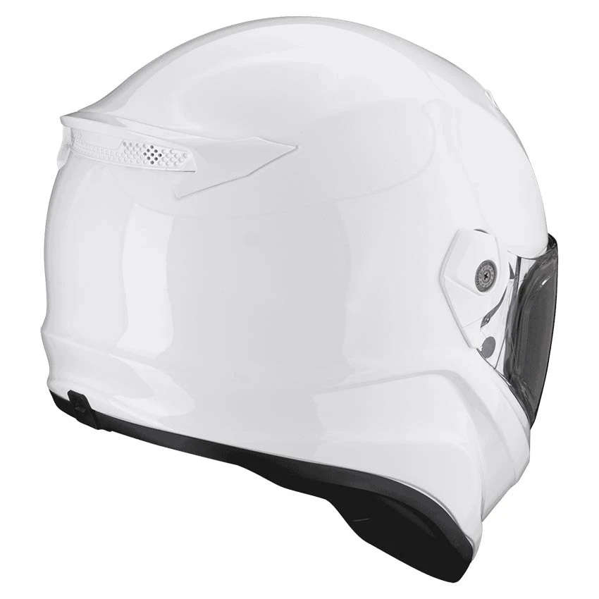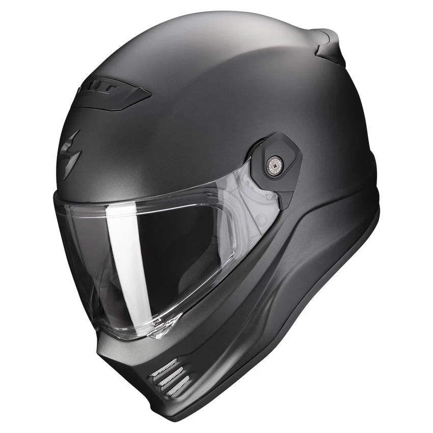 The Scorpion Covert FX Solid motorcycle helmet is made of Ultra TCTâ„¢, which is extremely light, digressive integrity on impact absorbs more energy. The visor of the Covert-FX is anti-scratch treated and in the box you’ll find a dark smoke visor included. The Covert-FX has vents on the chin that you can open and close with a slider. In addition, on the top of the helmet there is a top vent that you can open and close by using a small slider. All the warm air in the helmet can escape through the spoiler on the back of the helmet. The Covert-FX meets the new strict ECE 22.06 certification.Â