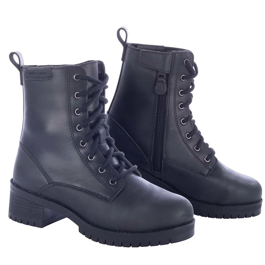 The classic styled Segura Lady Sally motorcycle shoes are easy to combine with any outfit. The outershell is made of durable cow leather. The heel and toes are reinforced for improved protection. The lateral zip offers easy and quick entrance.