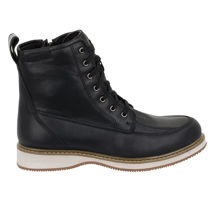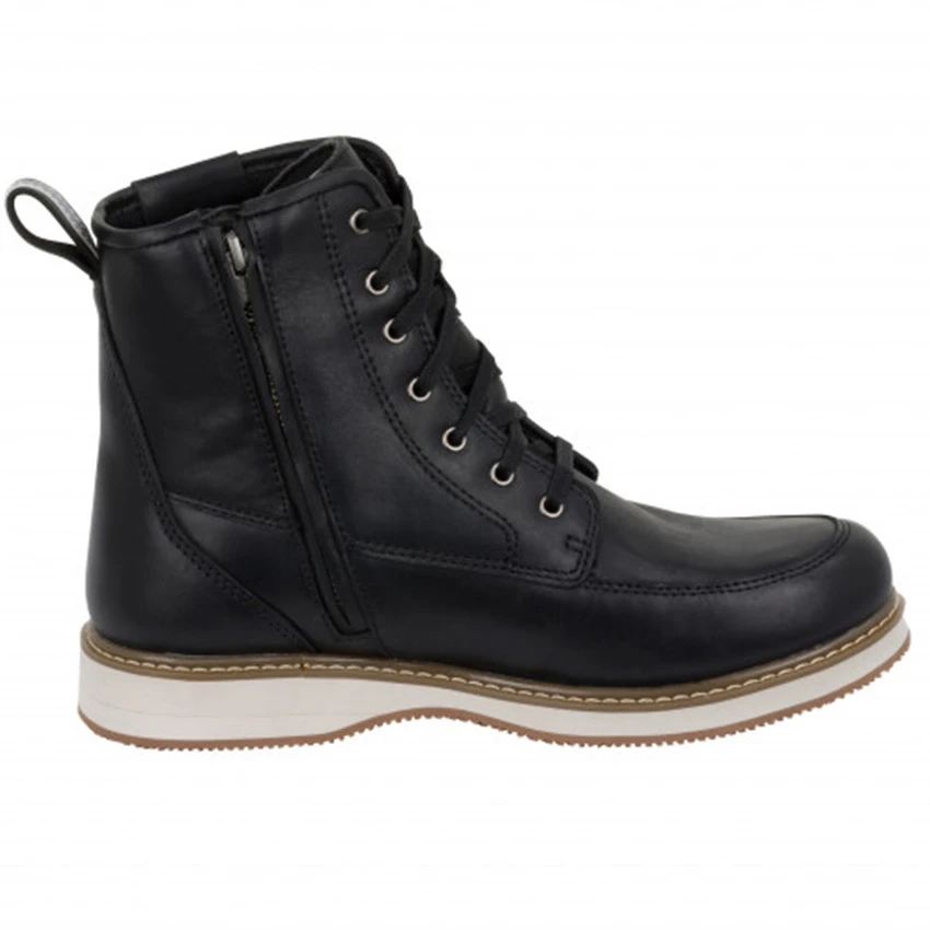 The Segura Livingston motorcycle shoes are inspired by the style of the American ‘Red Wings’ shoes. Easy entry thanks to zippers on the side of the shoe. Made with a waterproof membrane and cow leather with reinforcements around the ankle and toes.