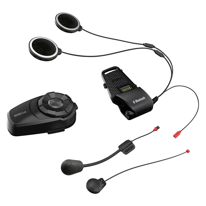 The Sena 10S motorcycle communication system is the upgraded version of Sena’s flagship Bluetooth headset for motorcycle helmets, the SMH10. Talk to 3 riding companions via HD audio, up to 1.6 km (1.0 mile) away, take calls, listen to music and more. Riders can connect with all Sena and non-Sena Bluetooth motorcycle headsets using Universal Intercom™. Even at high speeds, listening to music or GPS navigation from your smartphone is simple, thanks to the upgraded speakers in the 10S headset. Whether you’re talking over the intercom or taking a phone call, Sena’s Advanced Noise Control™ ensures ambient noise doesn’t interfere with incoming and outgoing audio.