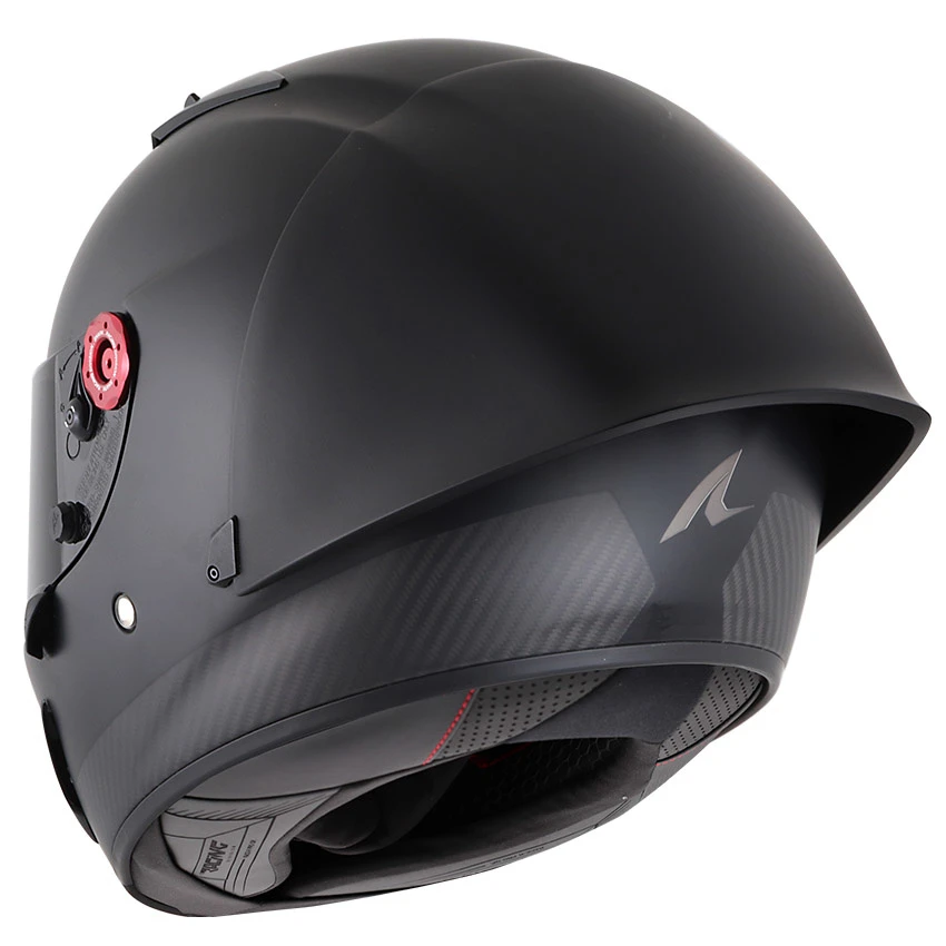Optimal aerodynamics, the unique airfoil has been developed from digital simulations and validated in the wind tunnel for exceptional air penetration and minimised buffeting effect, offering optimal stability even at high speeds. Developed by our R&D design office and approved for use in competition. Premium finishes and, like Shark MotoGP riders, you can enjoy a Racing package comprising an official carry bag and a Dark Smoke anti-scratch and anti-fog visor.Â