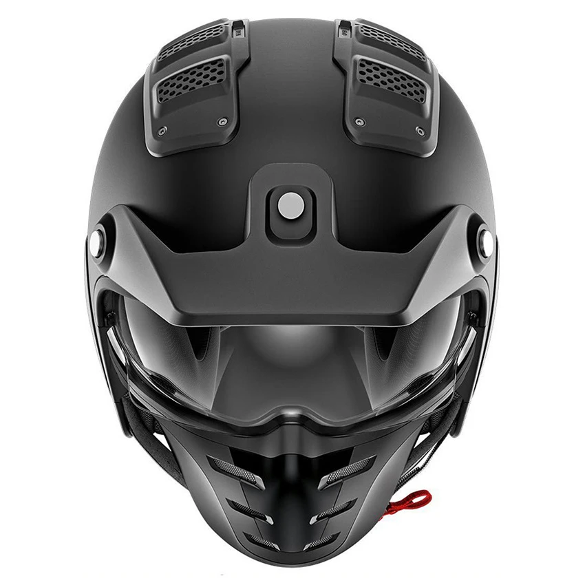 Ventilation openings such as with traditional full-face helmets are unnecessary here, but the X-Drak was given a so-called ‘Low-speed Ventilation system’, in the form of many perforated surfaces that provide a light and airy feel. With an integrated sun visor and extra chin, you do not just give the whole a different view; in terms of protection against the weather, this exceeds the standard jet helmet. That visor is scratch-resistant, treated against fog and equipped with a quick-release system. By default, you also get the detachable flap.