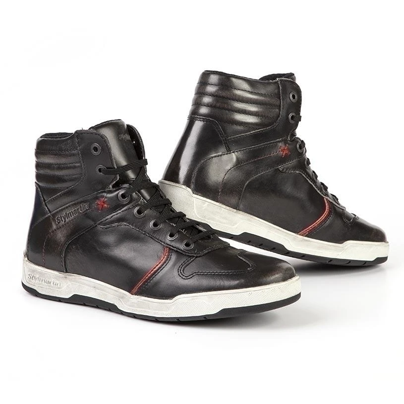 With Stylmartin you never have to compromise on safety when you want a good lookin’ boot. This trendy motorcycle sneaker with a vintage look makes your outfit complete. Due to its weathered and tough appearance, this Stylmartin Iron WP motorcycle shoe can be combined well with your motorcycle clothing but also with your regular jeans. The weathered leather of the Stylmartin Iron is treated with a coating so that it hardly absorbs moisture. To guarantee dry feet, a waterproof membrane has been applied on the inside which also breathes. There is also a removable anatomical footbed in the sneakers. For the necessary protection, a protector has been fitted at the height of the ankle and the toe of the shoe has been reinforced.