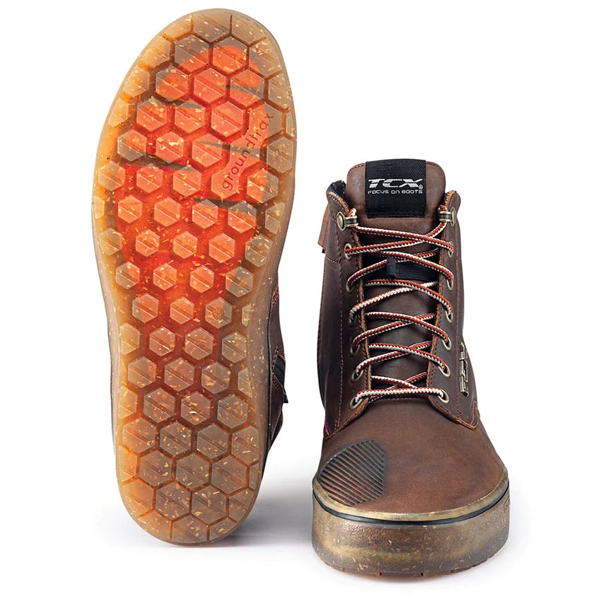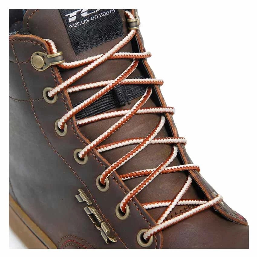 The TCX Dartwood WP is a cool urban motorcycle sneaker with a waterproof membrane so that it can be worn in any type of weather. In addition, this (T-Dry) membrane also ensures that your feet can continue to breathe to avoid sweaty and slippery feet. The full-grain leather exterior provides a luxurious and more traditional look. The toes and heels are reinforced, and on the ankles, you will find D3O protection. The ZPLATE midsole offers flexibility in the front and the abrasion-resistant Groundtrax rubber outsole is designed to provide stability. The Dartwood waterproof is easy to put on thanks to the combination of lace and zipper.