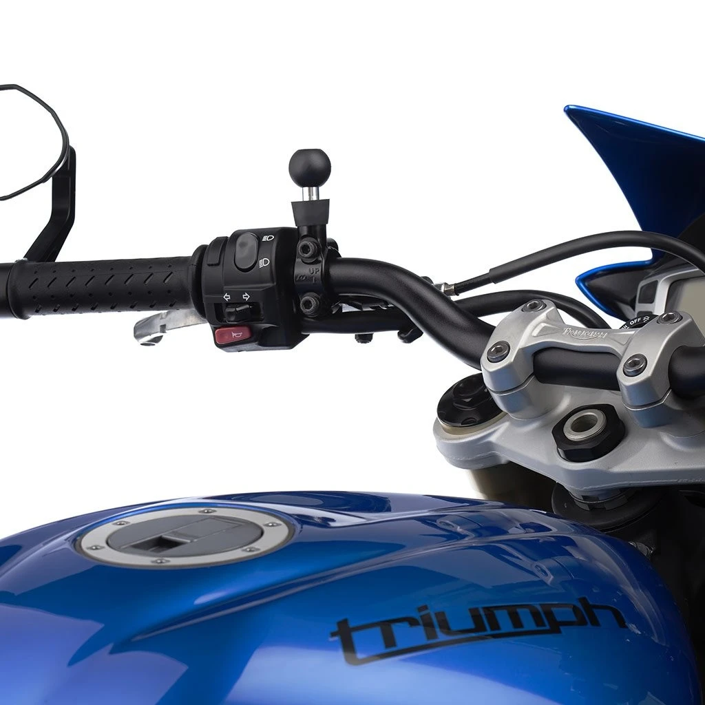 M10 screw with 25mm ball with 1.25 and 1.5 threads. This short attachment is ideal to replace for example a mirror to use for mounting navigation or a phone holder.